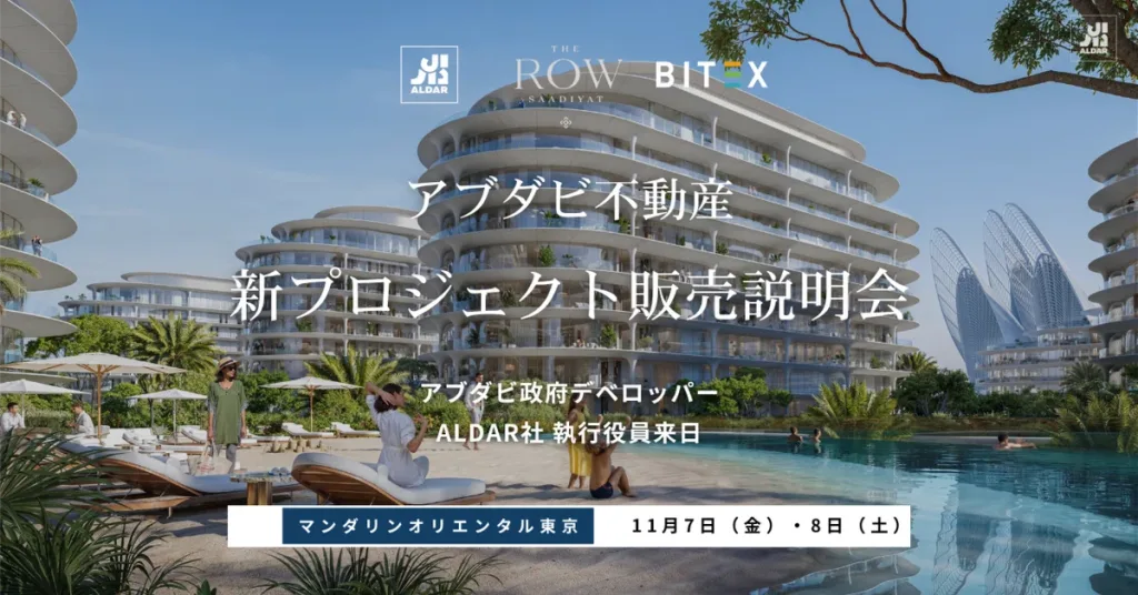 アブダビ新プロジェクト公開説明会開催ALDAR × BITEX(11月7日・8日inマンダリンオリエンタル東京)...(続きを読む)