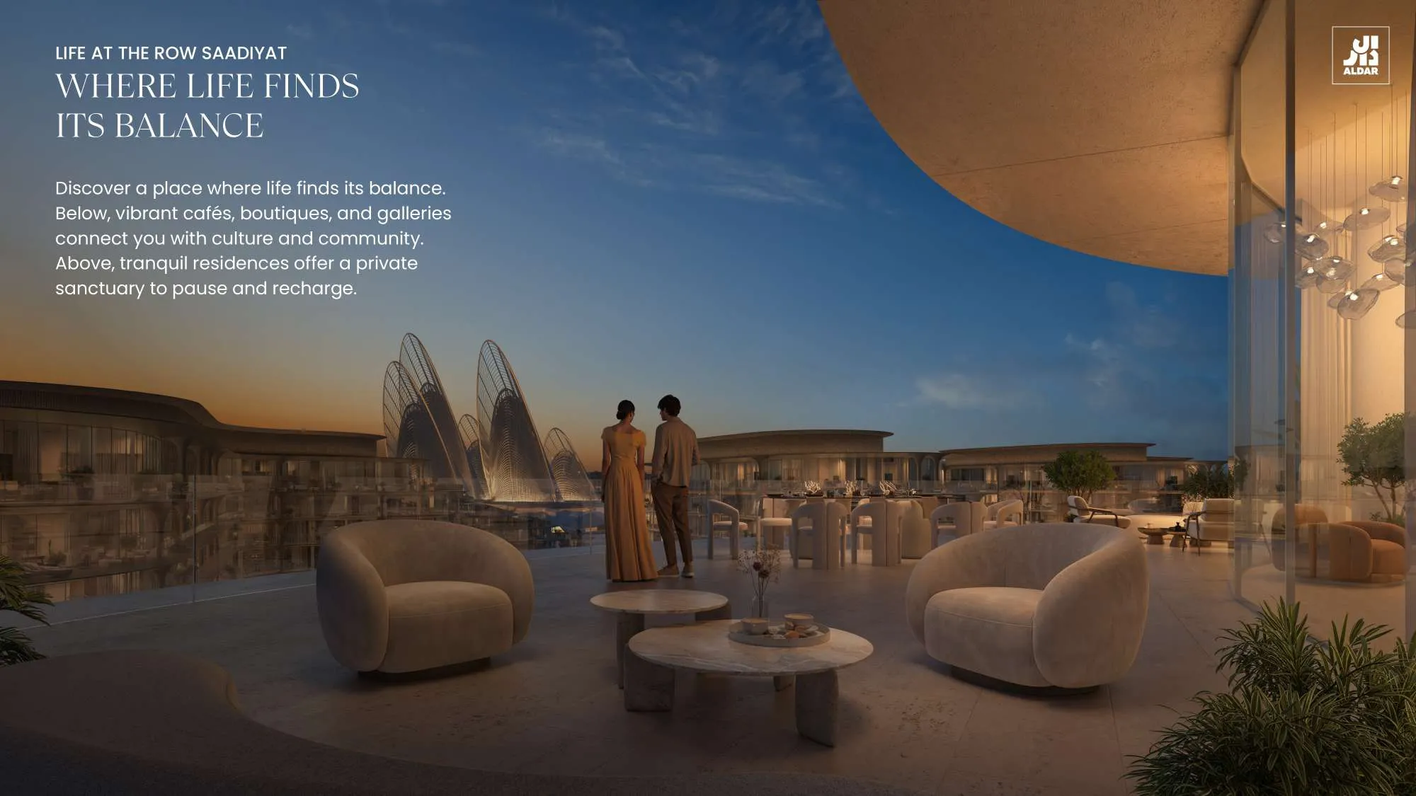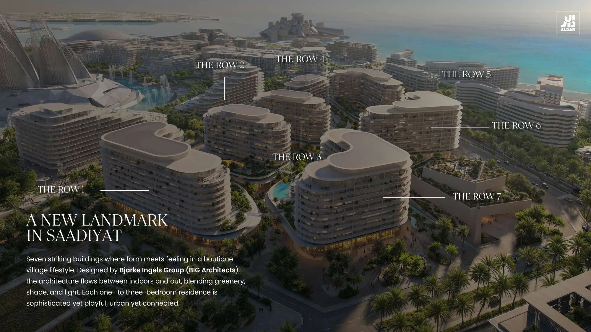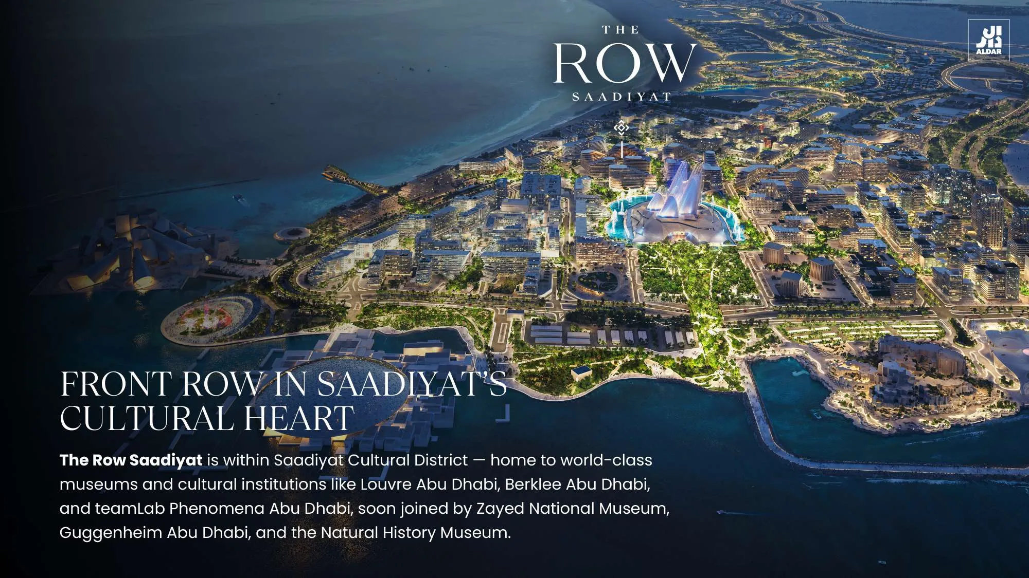 The Row Saadiyat(ザ・ロウ・サディヤット) は、アブダビの文化的中心地「サディヤット・カルチュラル・ディストリクト」に誕生する、建築美と自然が調和した新たなランドマークレジデンスです。