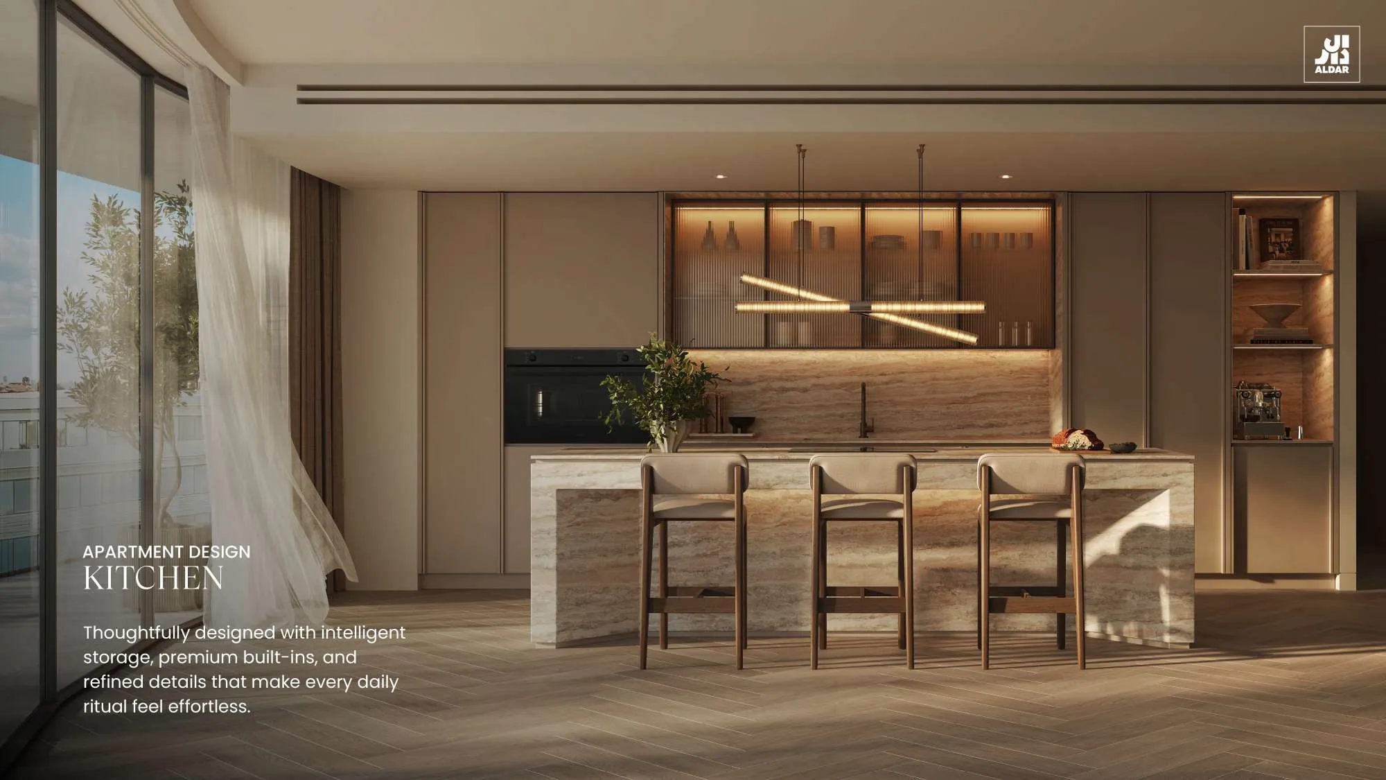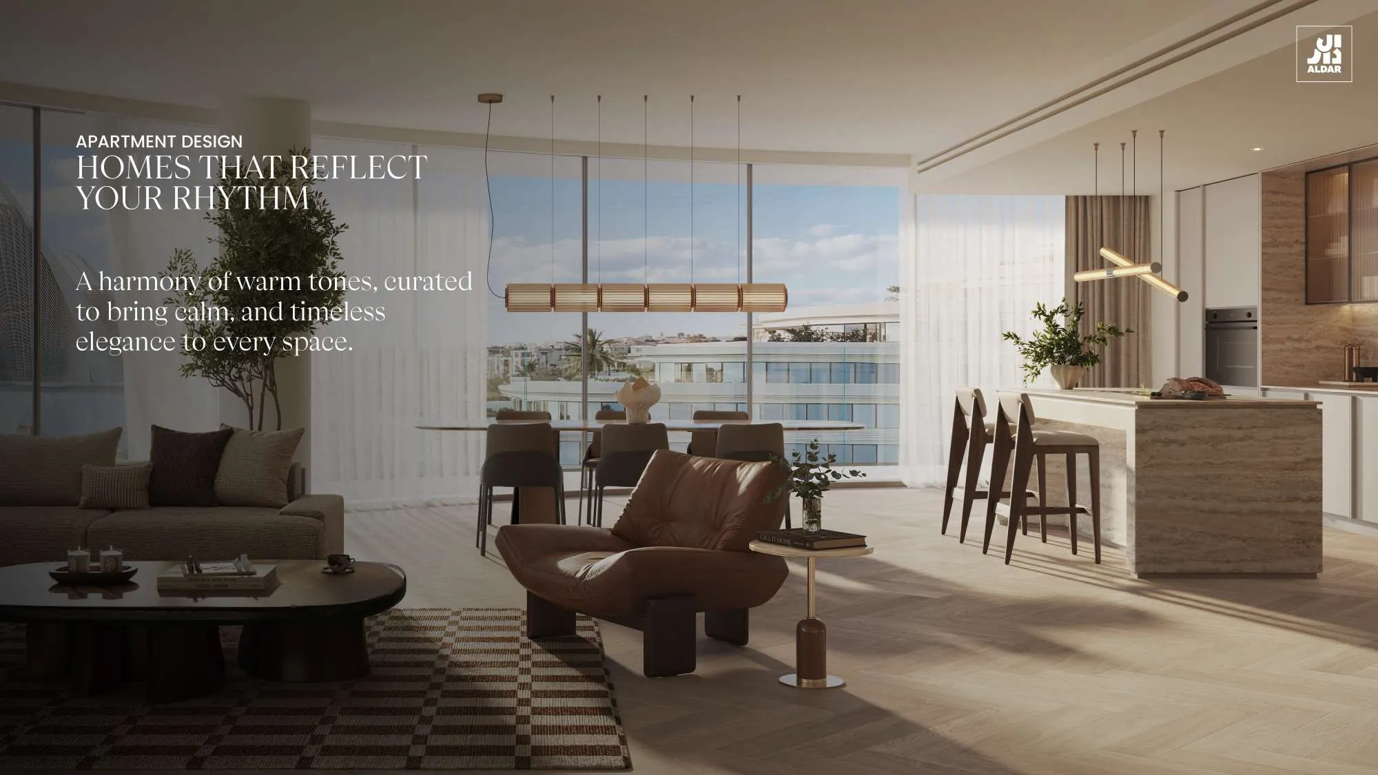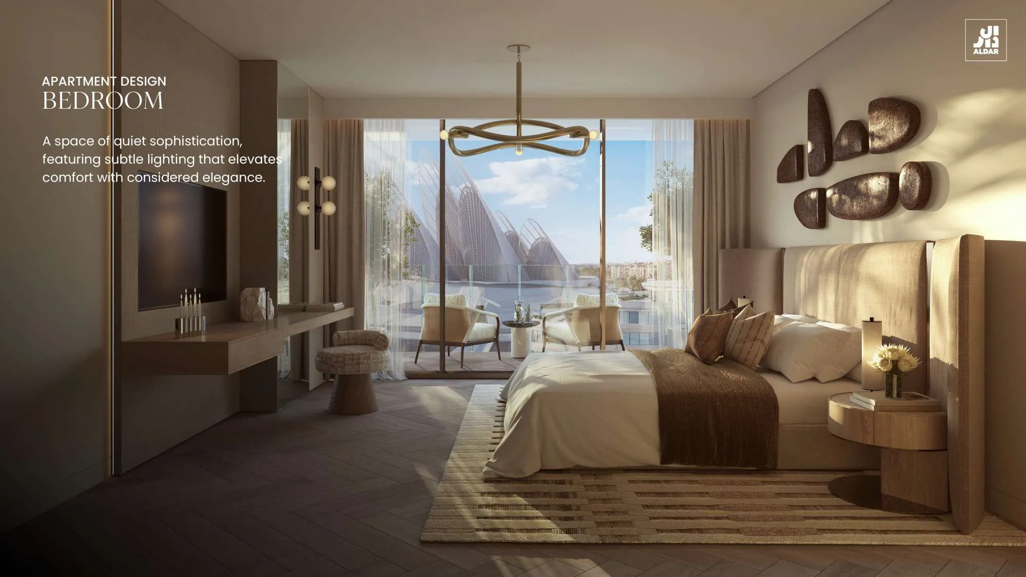全7棟からなるレジデンスは、ゆるやかに湾曲したフォルムとガラスのカーテンウォールが特徴で、1〜3ベッドルームまで多様な間取りを展開。各住戸には広々としたバルコニーが備えられ、サディヤット島の象徴的な建築群──ルーブル・アブダビやグッゲンハイム・アブダビを望む眺望が広がります。また、居住空間は「静けさと温もり」をテーマに、Kettle Collectiveが手掛けたインテリアを採用。自然素材の質感を生かし、落ち着いたトーンで統一された空間は、上質な日常を演出します。